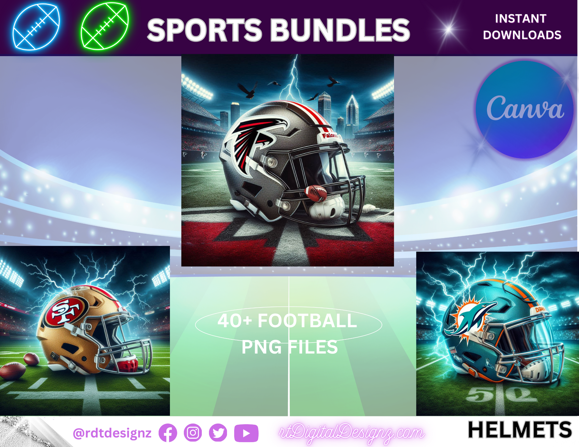 What’s Included: FOOTBALL THEMED HELMETS (40 PNG Images)